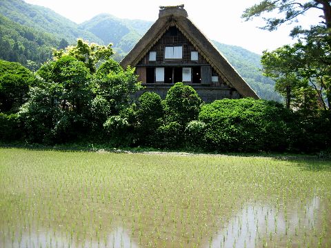 Shirakawa-go; Wednesday, June 14, 2006: A museum in itself (which we toured), the Wada House is the largest remaining gassho-zukuri house in the village. The pond in front of the house is a rice paddy.